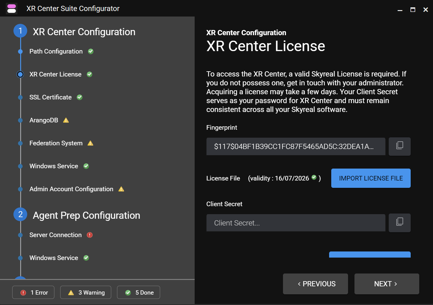 - Go to step "XR Center License"